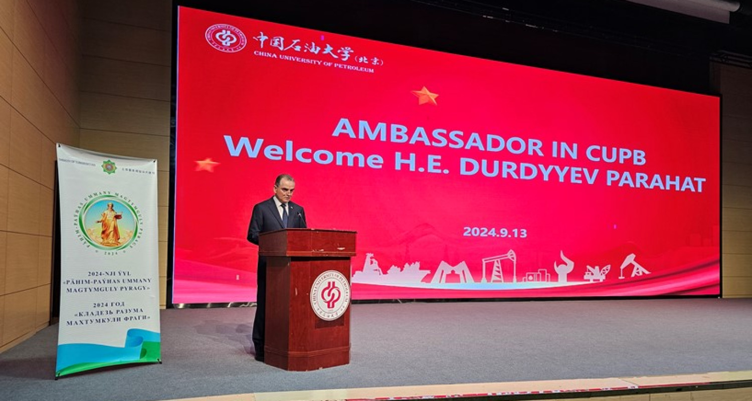 On September 13, 2024, on the occasion of the beginning of the new academic year, a meeting was held with Turkmen students studying at the China University of Petroleum (Beijing), dedicated to the main vectors of Turkmenistan’s domestic and foreign policy, the 300th anniversary of the birth of the poet Makhtumkuli Fragi, and in honor of the 33rd anniversary of Turkmenistan’s Independence. The event was chaired by the Ambassador of Turkmenistan to the People’s Republic of China P. Durdyev.