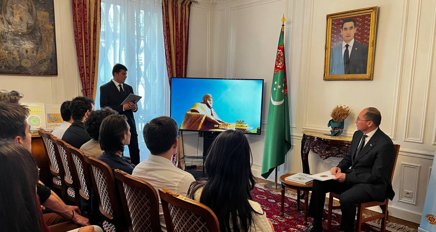 Tanyşdyrylyş dabarasynyň çäginde talyplar ýurdumyzyň daşary syýasatynyň ileri tutulýan ugurlary, ykdysady potensialy we maýa goýum mümkinçilikleri, şeýle hem Türkmenistanyň baý medeni mirasy barada jikme-jik maglumat aldylar. Ilçi Türkmenistan bilen Fransiýanyň arasyndaky ikitaraplaýyn gatnaşyklaryň taryhyna we häzirki ýagdaýyna ünsi çekdi we hyzmatdaşlygyň mundan beýläk-de çuňlaşdyrylmagyna özleriniň çalt ösýändiklerine we özara gyzyklanmalaryna ünslerine çekdi.